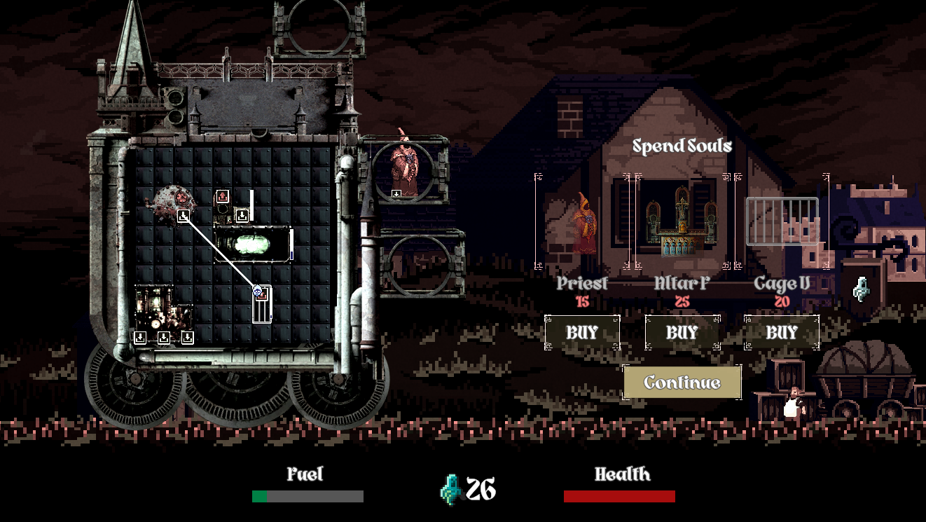 - Logistics: Manage your connections carefully. Save up Souls at the shop to get new elements. Use the Restorator to heal and keep your Engine tanked.